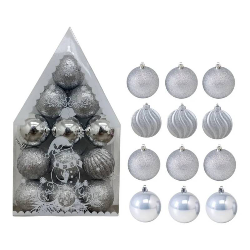 - Variedad de Tamaños: El combo incluye bolas de diferentes tamaños, ofreciendo versatilidad en la decoración. Desde el árbol hasta centros de mesa, podrás distribuir estas joyas plateadas según tu creatividad.