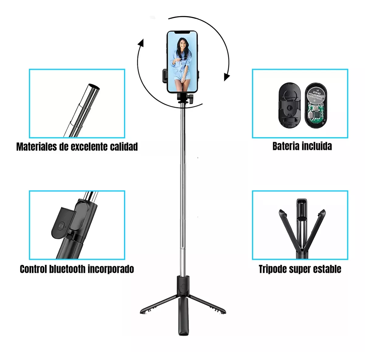 - Multifuncionalidad 3 en 1: Funciona como selfie stick, trípode y soporte desmontable..